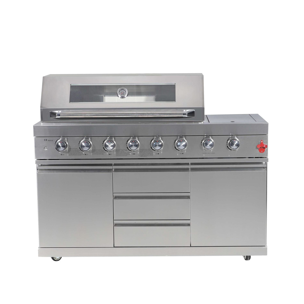 OR611A Gas Grill Burner Freestanding. 6 tube burners, 1 infra-red back burner,1 side burner burner.