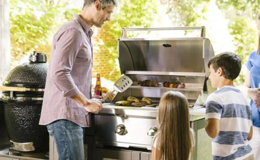 · High-performance stainless steel + weather-resistant countertops, outdoor-specific materials