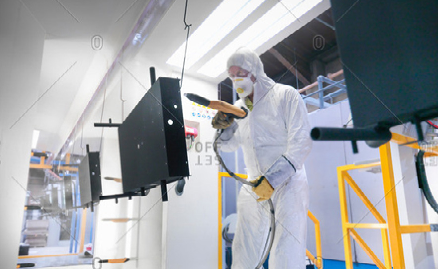 Powder Coat is uses corona discharge phenomenon to make powder coating adsorb on part.