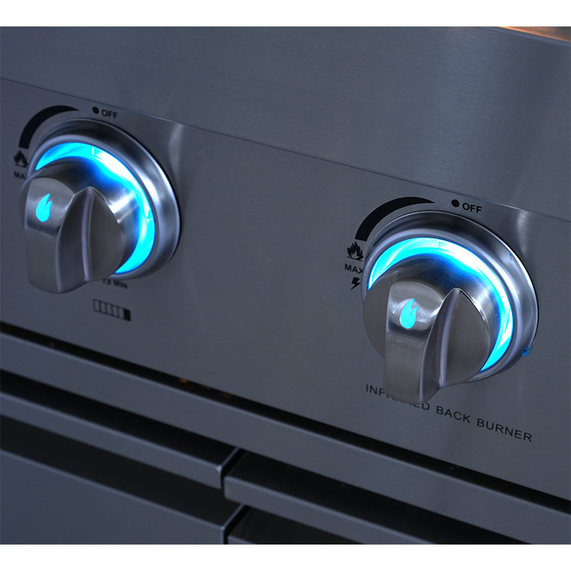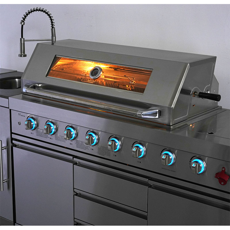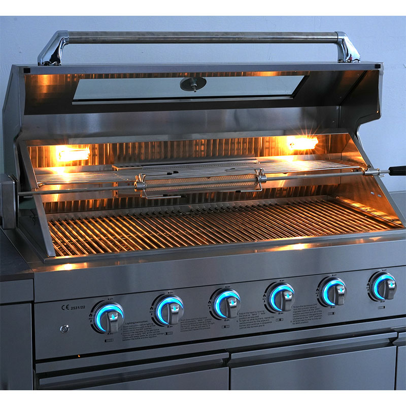 Power: 6*12100BTU Burners, 15300BTU infrared Rear Burner, 11600 Side Burner